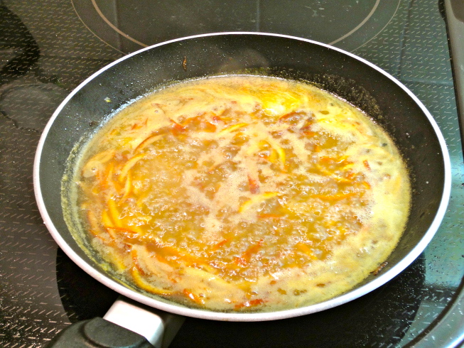 鴨氏を待ってる間に鴨のローストにセットのオレンジソースを作りました。